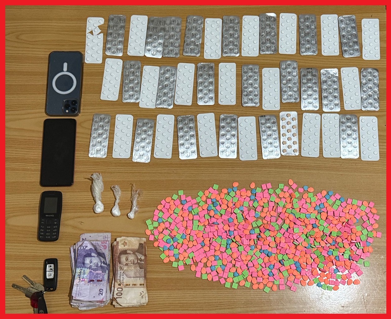 وقد جرى توقيف المشتبه فيهم بأحد أحياء مدينة سلا، وهم في حالة تلبس بحيازة وترويج المخدرات، حيث أسفرت عملية التفتيش عن العثور بحوزتهم على 1279 قرصا مخدرا، من بينها 1004 قرصا مهلوسا من نوع “إكستازي” و275 قرصا طبيا مخدرا من نوع “ريفوتريل”.