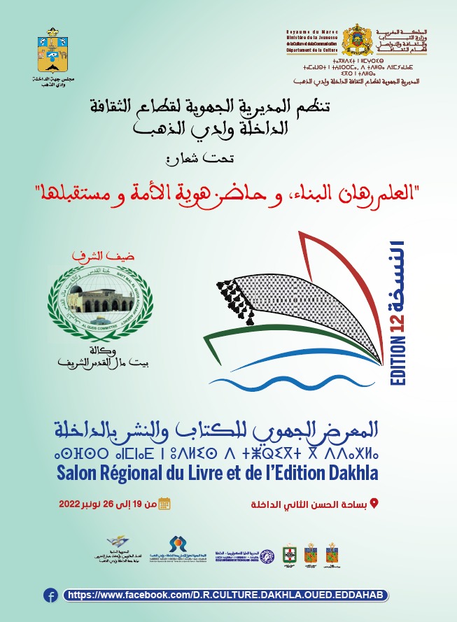 تنظم المديرية الجهوية لقطاع الثقافة الداخلة وادي الذهب، وعلى مدى (08) ثمانية أيام بساحة الحسن الثاني وسط مدينة الداخلة النسخة 12 من المعرض الجهوي للكتاب والنشر وقد اختير له كشعار “العلم رهان البناء، وحاضن هوية الأمة ومستقبلها”، إلا ان اهم ما يميز هذه الدورة ضيف شرفها المتمثل في ” وكالة بيت مال القدس الشريف “.