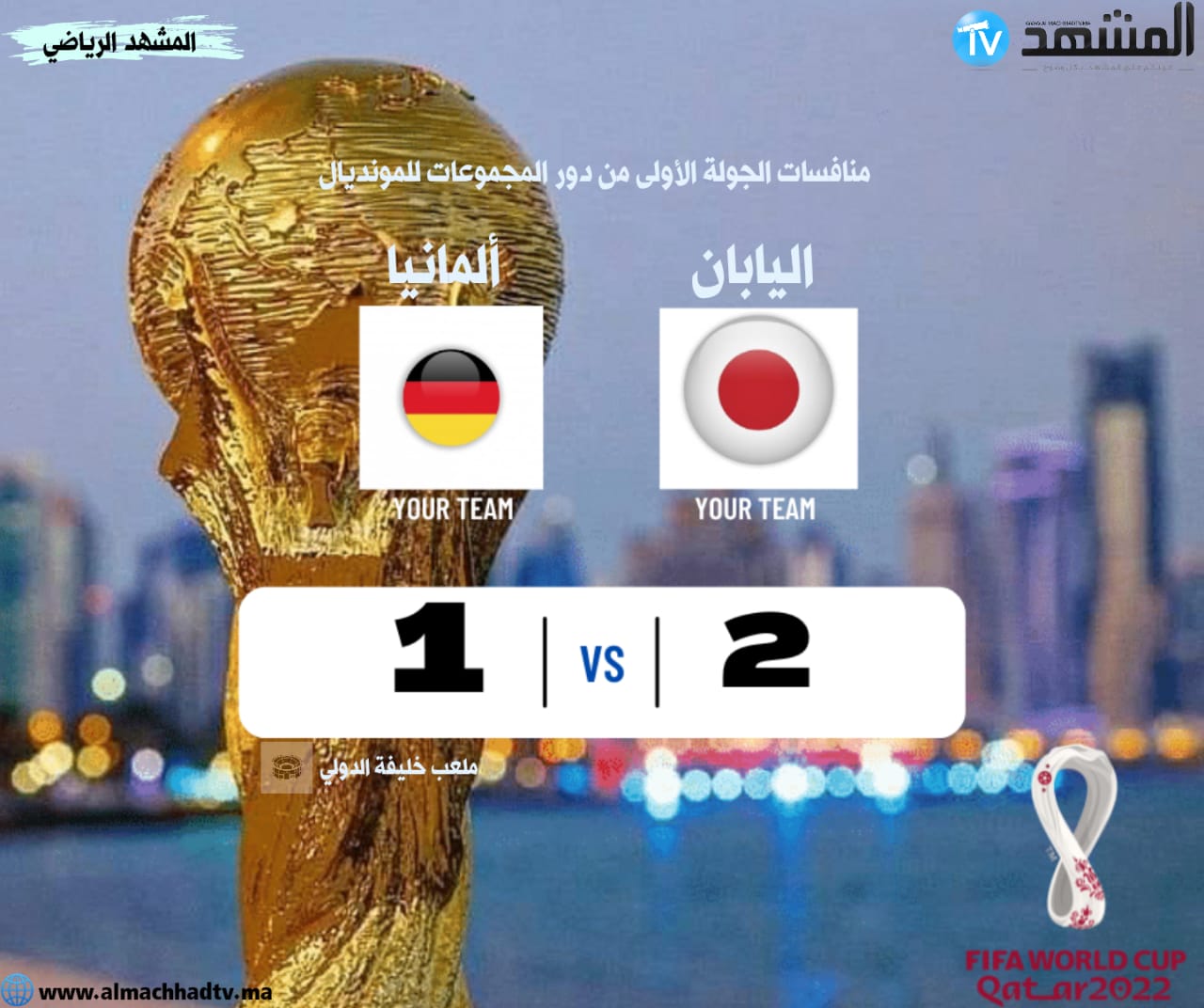نجح المنتخب الياباني في حصد ثلاث نقاط ثمينة من فوزه على حساب المنتخب الألماني، بنتيجة هدفين لهدف واحد في المباراة التي جمعت المنتخبين اليوم الأربعاء، على أرضية ملعب خليفة الدولي، لحساب المجموعة الخامسة لمونديال قطر 2022.