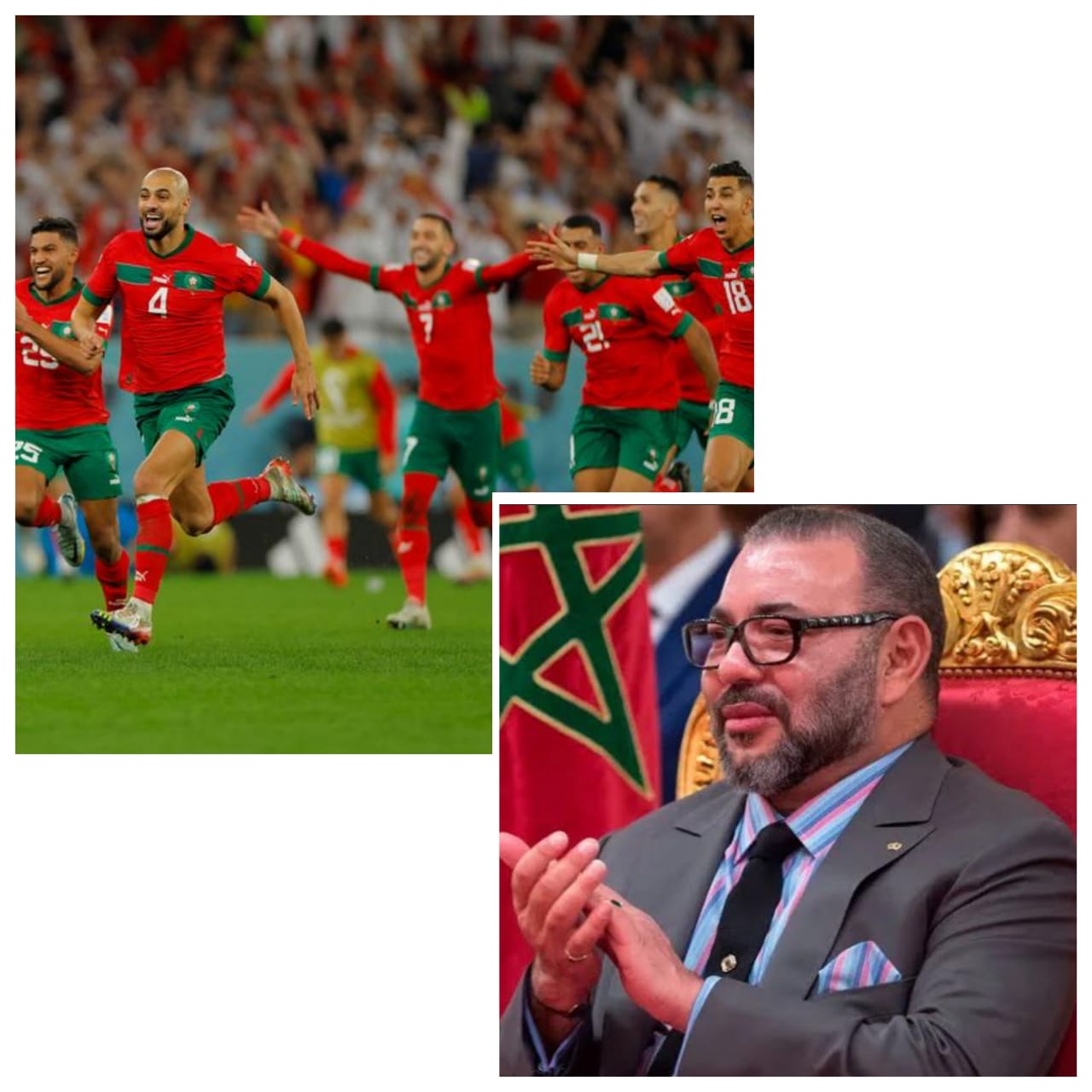 وأضاف صاحب الجلالة، في هذه البرقية، “وبقدر ما أسعدتم الشعب المغربي، ومختلف الجماهير الشقيقة والصديقة، خاصة منها العربية والإفريقية، التي تابعت إنجازكم الباهر بكل محبة وفخر وإعجاب، بقدر ما أشهدتم العالم، بحق، بعلو كعبكم، وصلابة عزيمتكم النابعة من قوة إيمانكم وحبكم لوطنكم، وتشبثكم بشعاركم الخالد “الله، الوطن، الملك”.