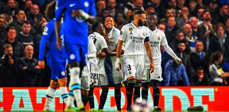 بعد أن حققوا لقب دوري أبطال أوروبا في العام الماضي بعد مشوار معجزة، يعود ريال مدريد بقوة إلى نصف نهائي المسابقة في هذا الموسم. فقد تغلب الفريق الملكي على تشيلسي بنتيجة 2-0 في المباراة الأولى في برنابيو الأسبوع الماضي، وحقق فوزًا بنفس النتيجة (0-2) في مباراة الإياب في ملعب ستامفورد بريدج في لندن، مساء الثلاثاء. وبذلك يتأهل ريال مدريد إلى دور نصف النهائي ليواجه مانشستر سيتي أو بايرن ميونخ في مباراة تُعتبر كأنها نهائي مبكر.