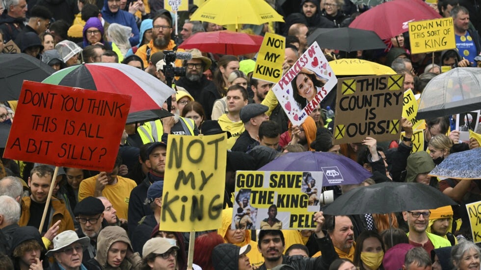 وقال مارتن ويغمان، أحد المتظاهرين المناهضين للملكية، لإحدى وسائل الإعلام: “لهذا السبب نحن هنا اليوم، لأن الملكية تمثل كل ما يسير بشكل خاطئ في المملكة المتحدة: الامتيازات والعدم المساواة وعدم وجود الديمقراطية”.