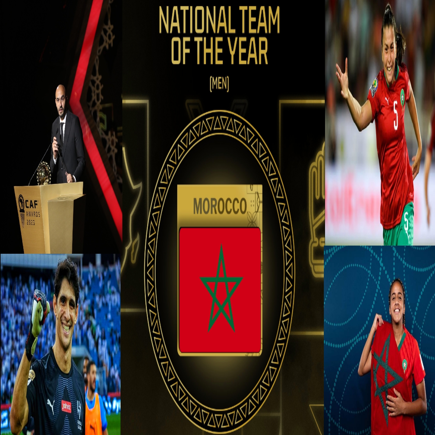 كما حصد المنتخب المغربي لكرة القدم، جائزة أفضل منتخب إفريقي لسنة 2023، وتسلم فوزي لقجع رئيس الجامعة الملكية المغربية لكرة القدم الجائزة.